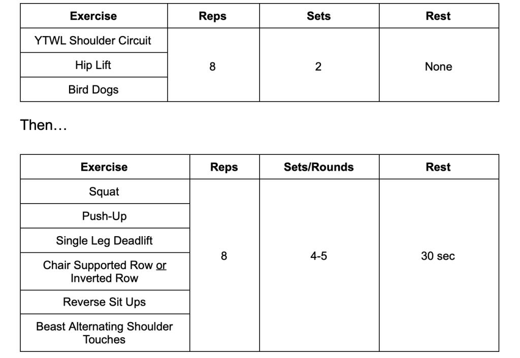 If you’re working on a 4-day per week workout schedule, here’s an example of how you could pursue your goals: